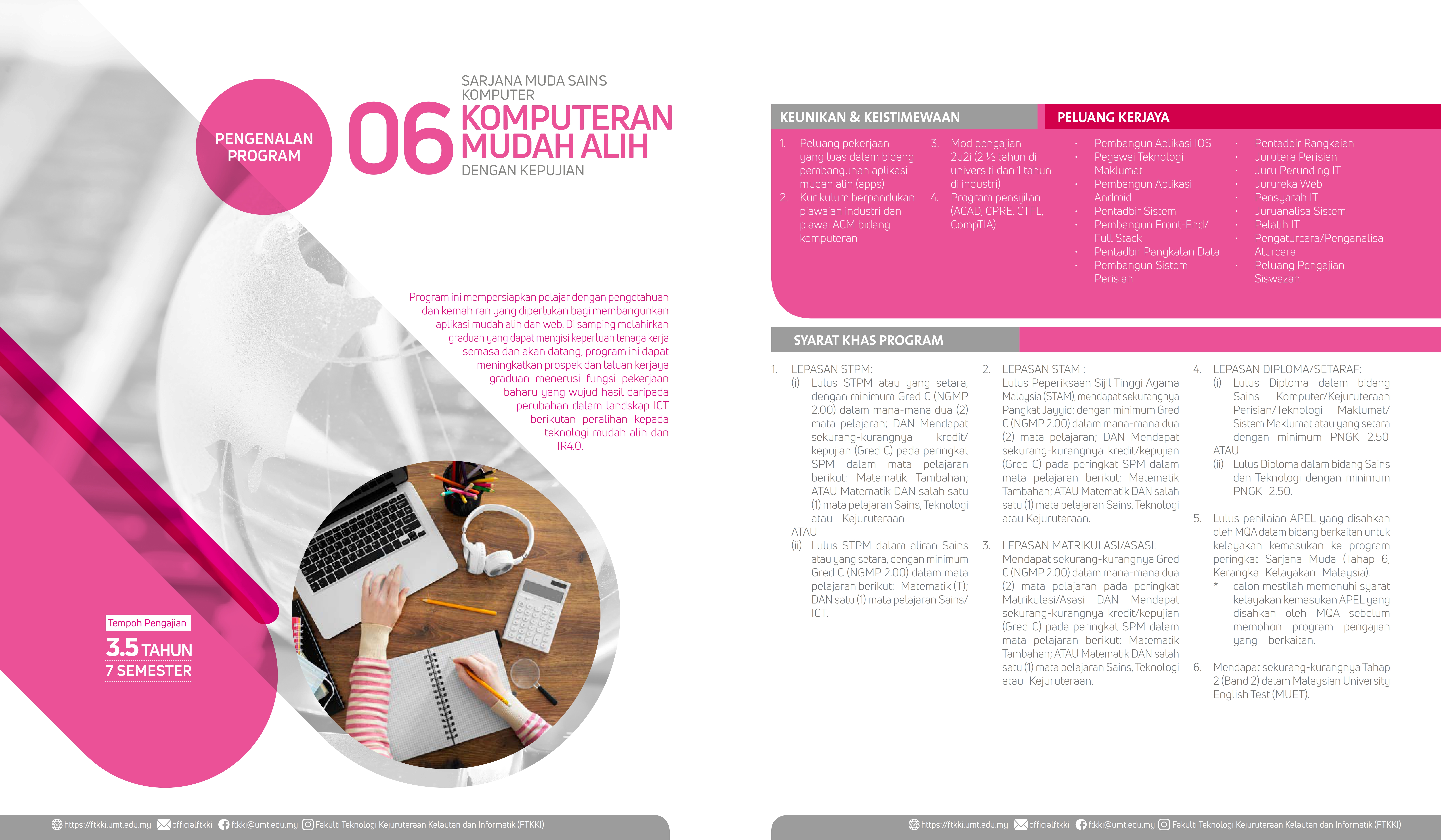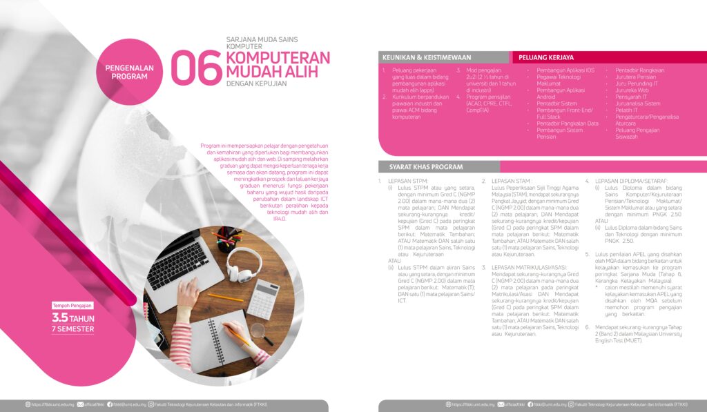 Bidang Sains Komputer di FTKKI, UMT, menawarkan tiga program pengajian iaitu;